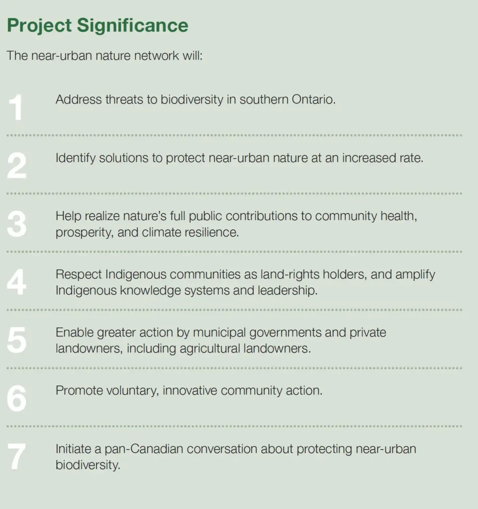 There are 3.2 hectares of lands and waters and 8 million people in the Greater Golden Horseshoe that can benefit from and contribute to this near-urban nature network.