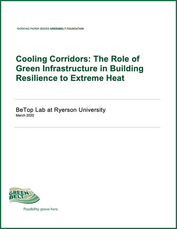 In partnership with Ryerson University’s Dr. Umberto Berardi, “Cooling Corridors: the Role of Green Infrastructure in Building Resilience to Extreme Heat” is the first report of its kind that quantifies the positive impact that the Greenbelt’s urban river valleys have on temperature.