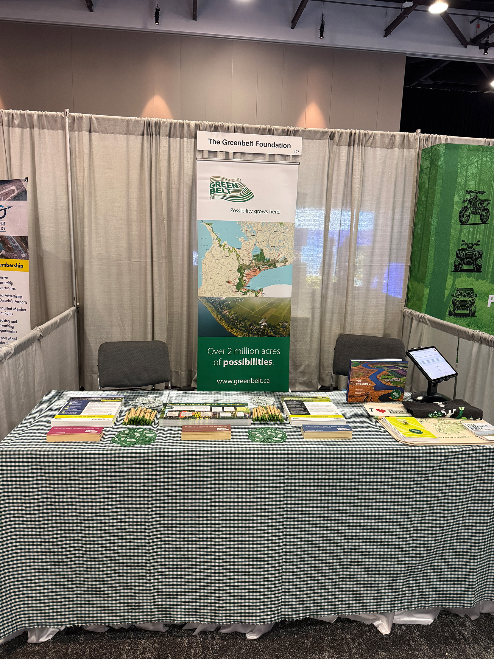 What made this experience truly special was seeing just how broad and heartfelt the support is for the Greenbelt, not only from within its boundaries, but from far beyond them. Throughout the conference, people from municipalities across Ontario, many outside of the Greenbelt itself, came by our booth to say hello, share a story, or simply thank us for the work the Greenbelt Foundation is doing. It was both humbling and inspiring.